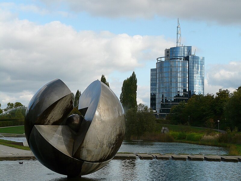IGA Gelände Stuttgart mit Kugel Skulptur am Egelsee