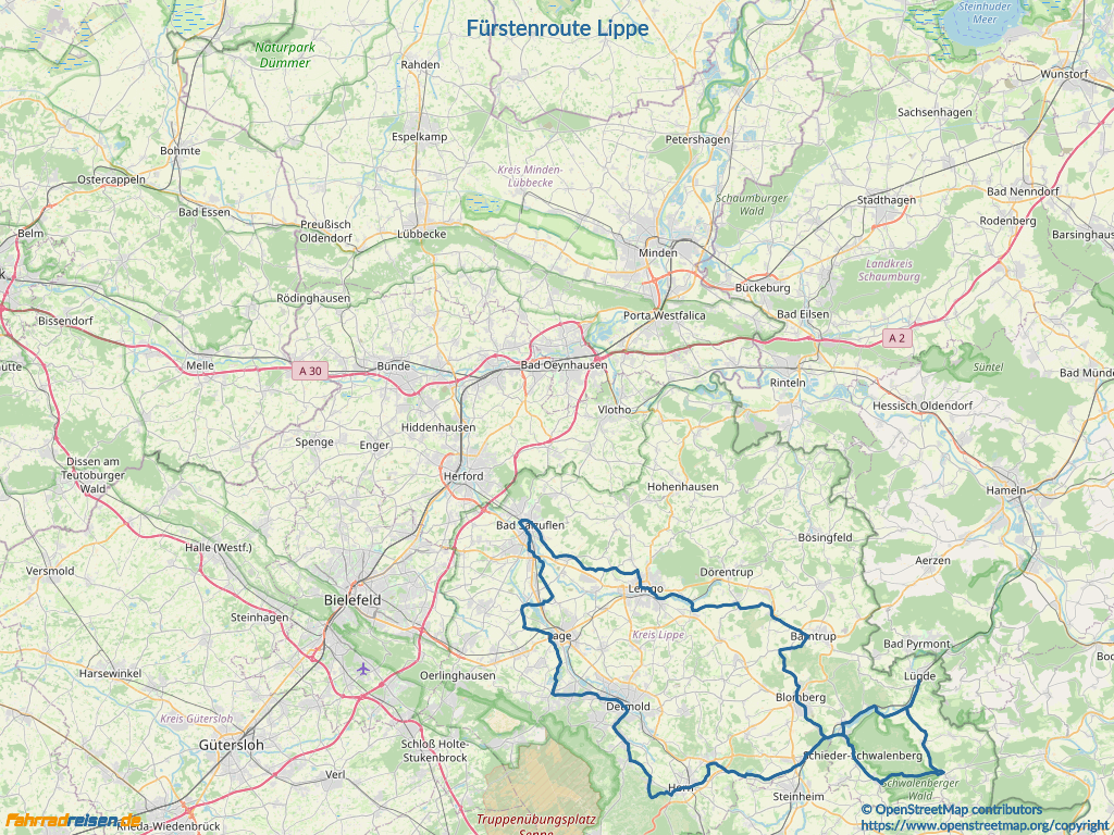Auf der Fahrt von Höhepunkt zu Höhepunkt können Radwanderer die außerordentliche landschaftliche Vielfalt und das abwechslungsreiche Terrain Lippes genießen. Neben flachen Bereichen sind es die Höhenzüge des Teutoburger Waldes und des lippischen Berglandes, die ein eher flach-welliges Hügelland einrahmen. Auf Grund dieser Geländevielfalt hat der Radwanderer gerade in Lippe viele Möglichkeiten.