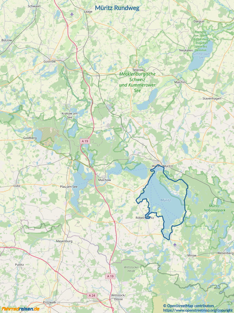 Die Reise um das »Kleine Meer« gehört zweifellos zu den schönsten Erfahrungen für jeden Rad- und Naturbegeisterten. Sie beginnt in Waren (Müritz) – der heimlichen Hauptstadt der Mecklenburgischen Seenplatte. Schnittige Segelboote, umlagerte Cafés und farbenfrohe Fassaden verleihen dem quirligen Hafenort mediterranes Flair. Nach wenigen Kilometern finden sich die staunenden Urlauber in der paradiesischen Einsamkeit des Müritz-Nationalparks wieder. Die urigen Wälder, verwunschenen Moore und kristallklaren Seen am Ostufer gleichen einem wildromantischen Garten Eden. Kraniche, Hirsche und Seeadler sind seine uneingeschränkten Herrscher. Die Vielfalt seltener Tiere und Pflanzen sucht ihresgleichen in Mitteleuropa. Von den eiszeitlichen Hügeln und geschützten Aussichtstürmen entlang der Route kann man das stille Königreich ausgiebig bewundern. Den riesigen Aquamarin zur Rechten und Dutzende blauer Perlen zur Linken erreichen die Reisenden das Wassersportmekka Rechlin. Am Abend sitzen sie mit roten Wangen in Lärz und betrachten das Bootsgetümmel auf der Müritz-Havel-Wasserstraße.