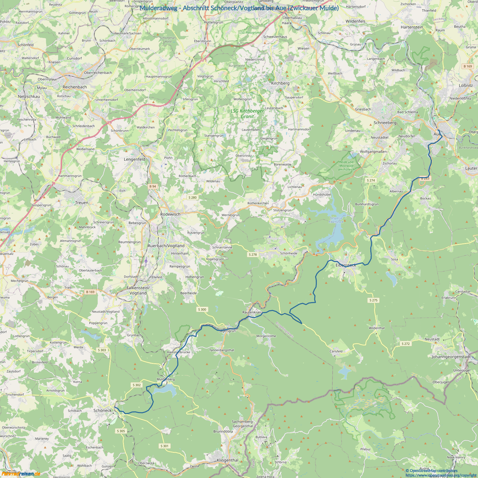 Mulderadweg - Abschnitt Schöneck/Vogtland bis Aue (Zwickauer Mulde)