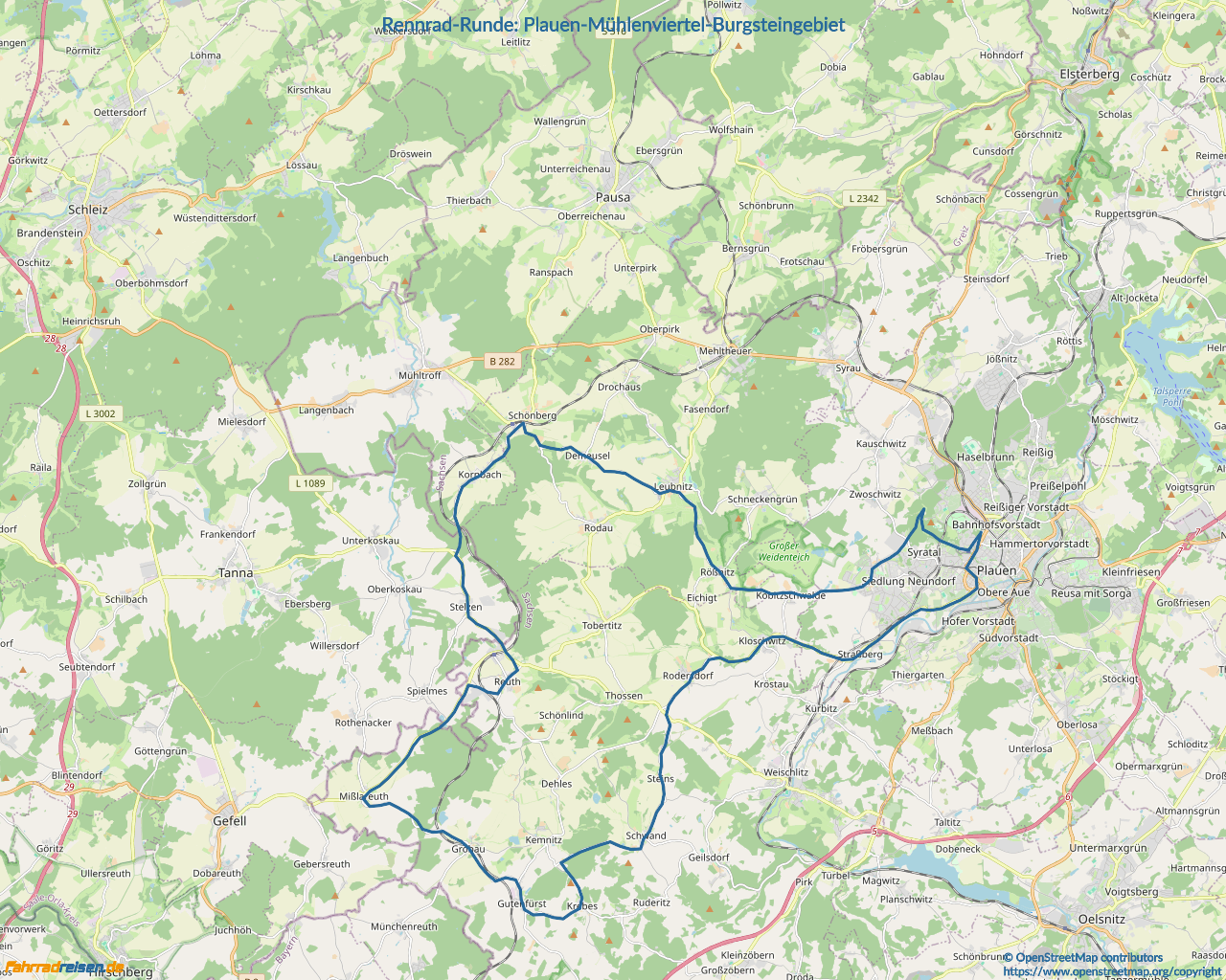 Rennrad-Runde: Plauen-Mühlenviertel-Burgsteingebiet