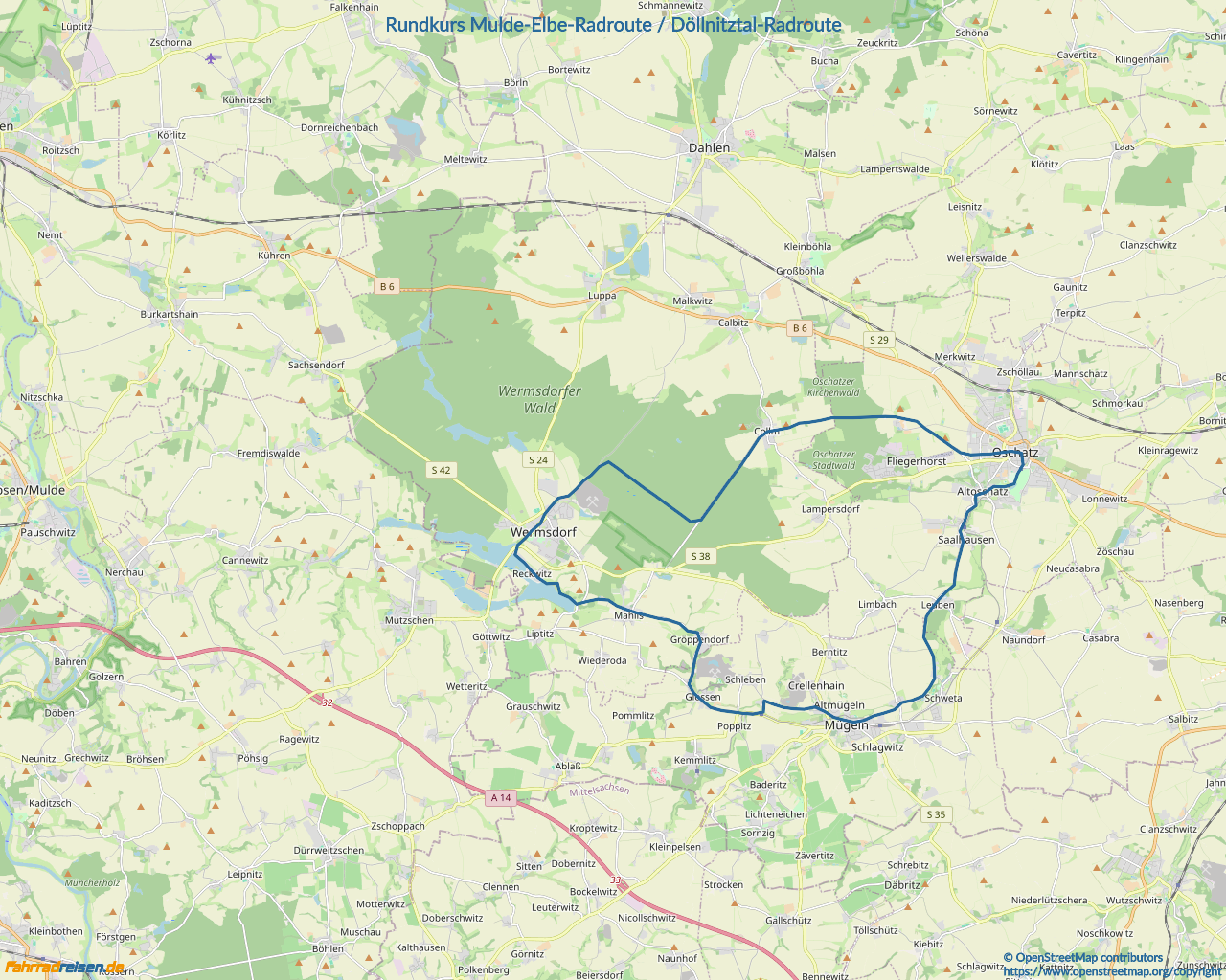 Rundkurs Mulde-Elbe-Radroute / Döllnitztal-Radroute