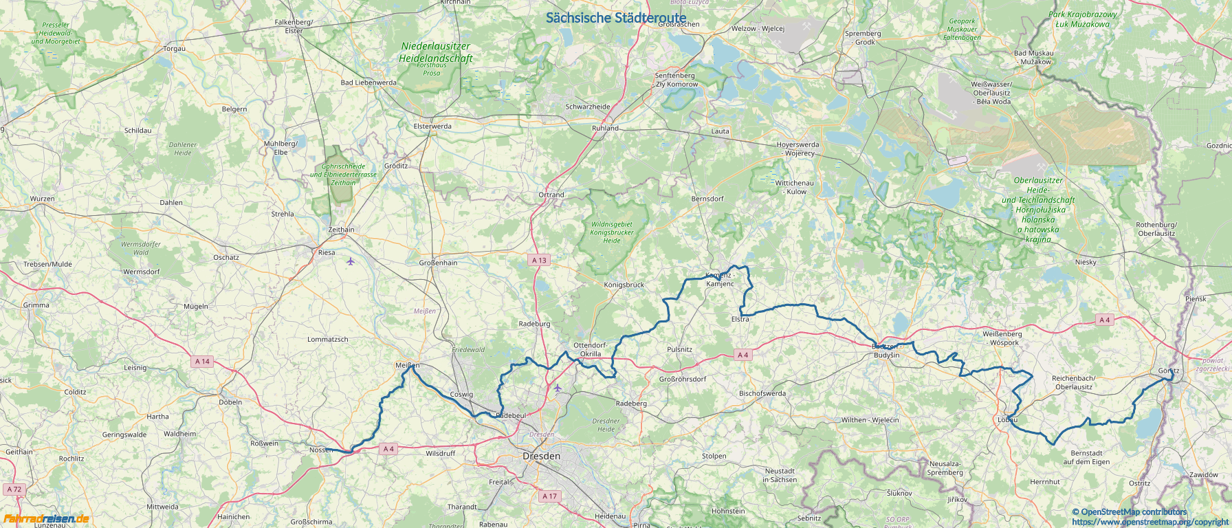 Historischer Hintergrund dieser Route ist der Zusammenschluss 6 sächsischer Städte im Jahre 1346 zu einem Schutz- und Trutzbündnis, dem "Oberlausitzer Sechsstädtebund". Durchfahren werden die Städt Görlitz, Löbau, Bautzen und Kamenz in der Oberlausitz.