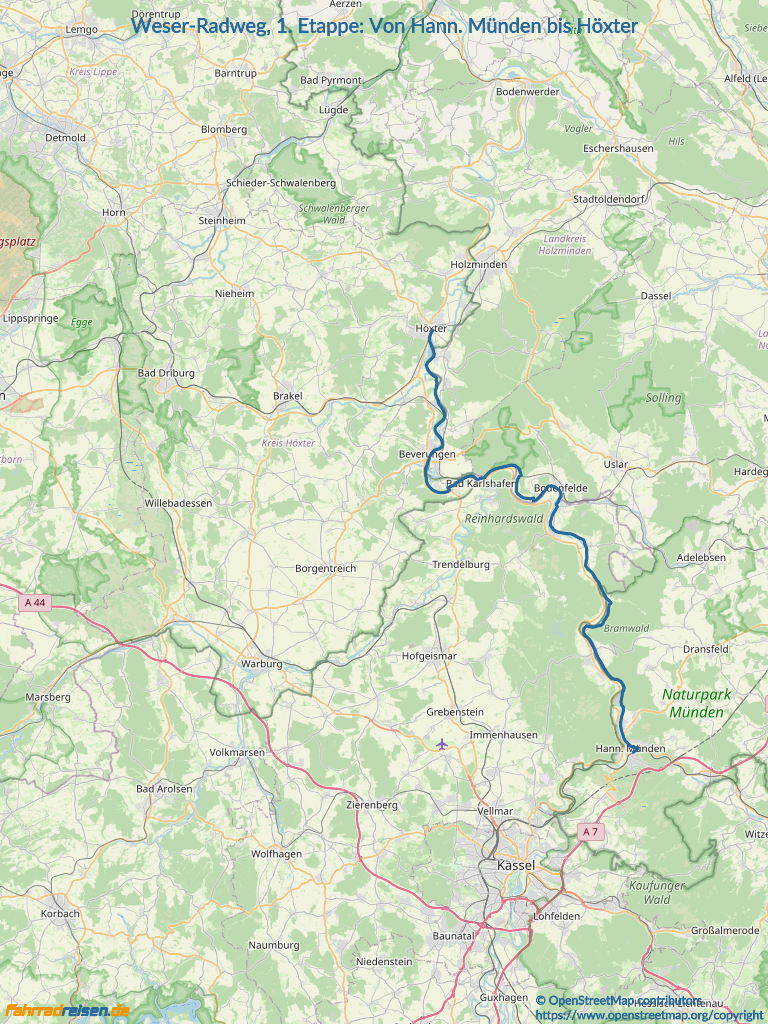 Weser-Radweg, 1. Etappe: Von Hann. Münden bis Höxter