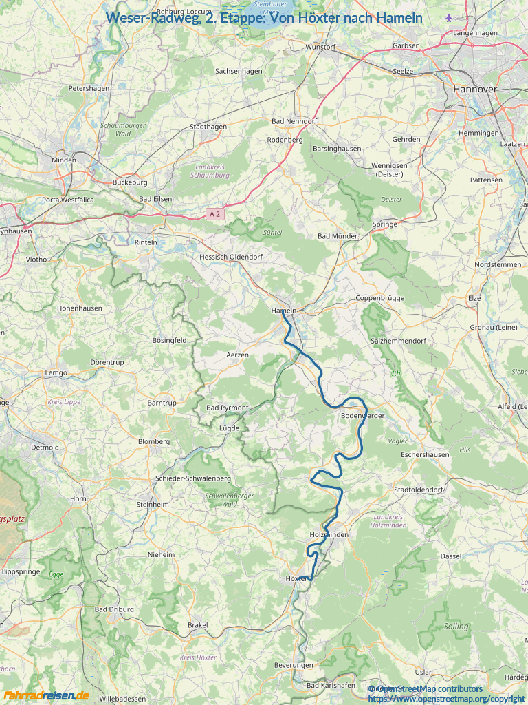 Weser-Radweg, 2. Etappe: Von Höxter nach Hameln