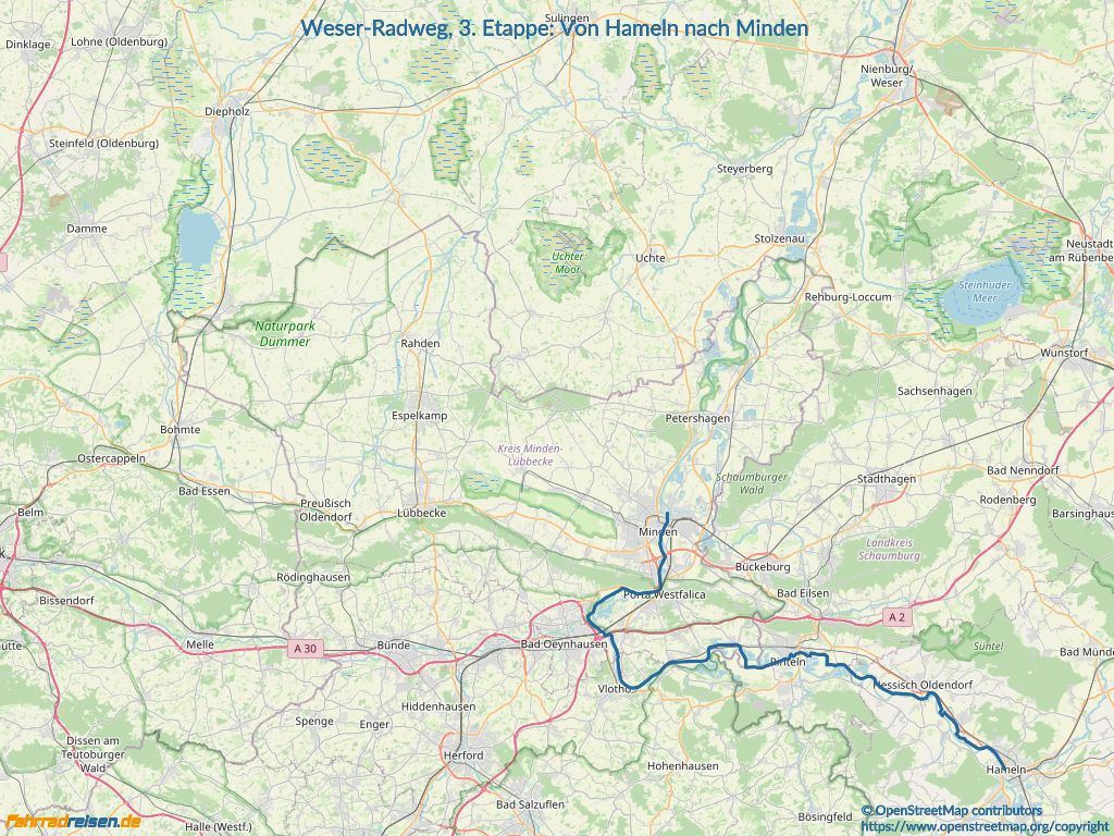 Weser-Radweg, 3. Etappe: Von Hameln nach Minden