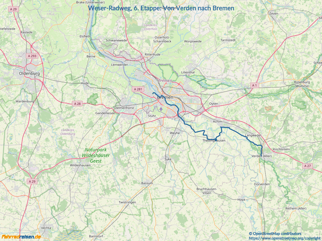 Weser-Radweg, 6. Etappe: Von Verden nach Bremen