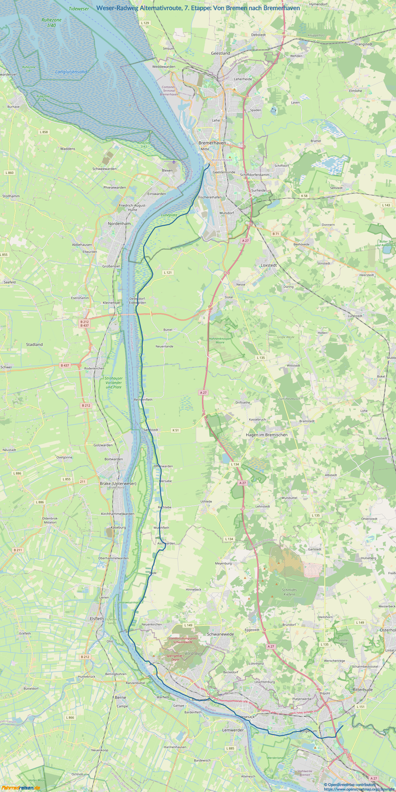 Weser-Radweg Alternativroute, 7. Etappe: Von Bremen nach Bremerhaven