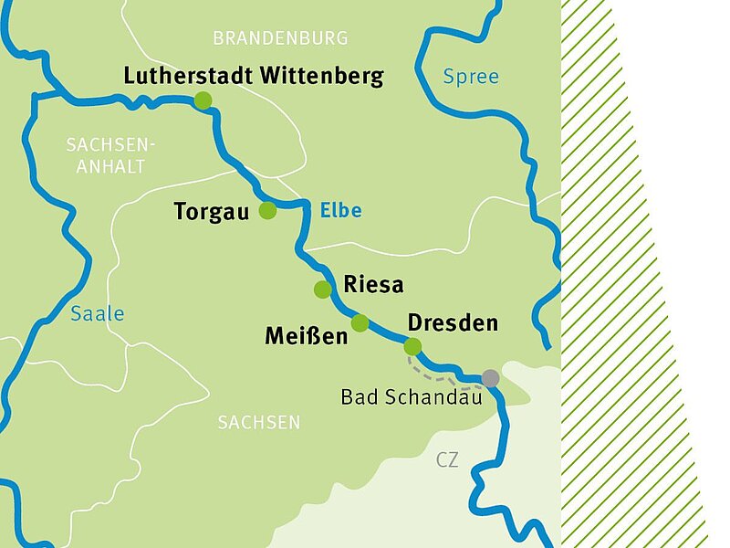 Hinweis: Diese Radreise ist auch in entgegengesetzter Richtung buchbar. Hier gelangen Sie zur Radreise am Elberadweg von Dresden nach Lutherstadt Wittenberg.
