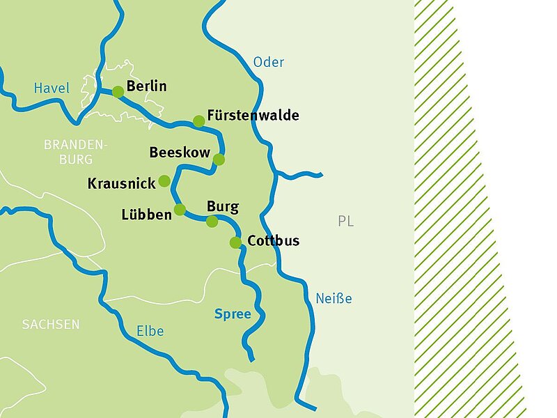 Entdecken Sie auf Ihren Fahrradtouren am Spreeradweg von Cottbus nach Berlin-Köpenick die abwechslungsreiche Landschaft, die zwischen Cottbus, dem Tor zum Spreewald, und der Spreemetropole Berlin liegt.