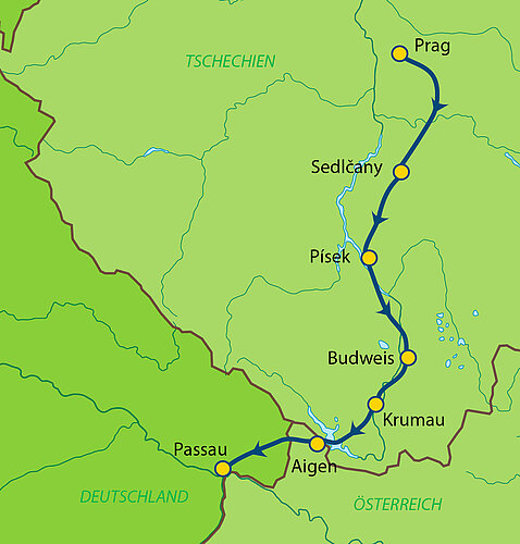 Übersicht über eine Auswahl der schönsten Radtouren in Budweis: