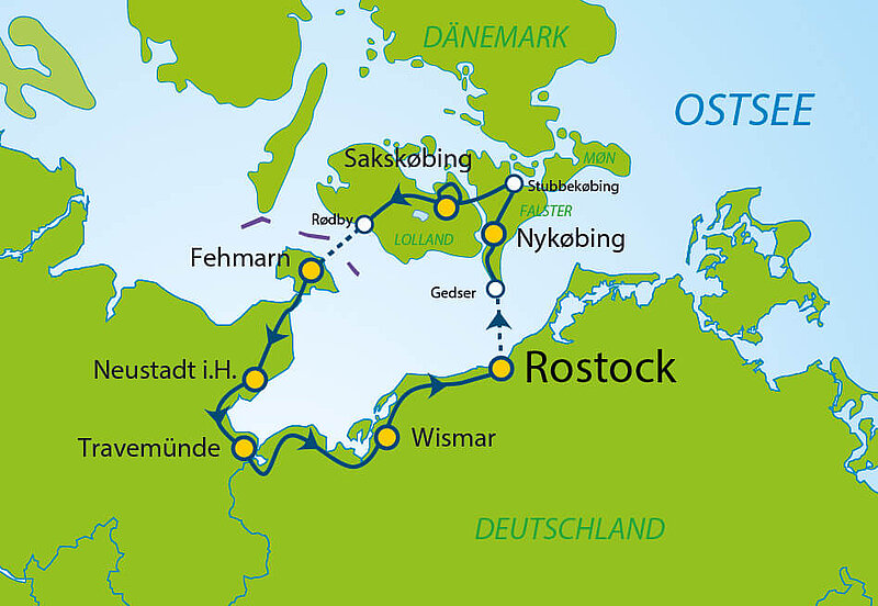 Erleben Sie die einzigartige Verbindung von dänischer Gelassenheit, Ostseeflair und malerischen Hansestädten auf dieser abwechslungsreichen Radreise. Sie starten in der Hansestadt Rostock, überqueren die Ostsee nach Dänemark, erkunden verträumte Inseln, historische Städte und kehren entlang der Lübecker Bucht zurück nach Mecklenburg.