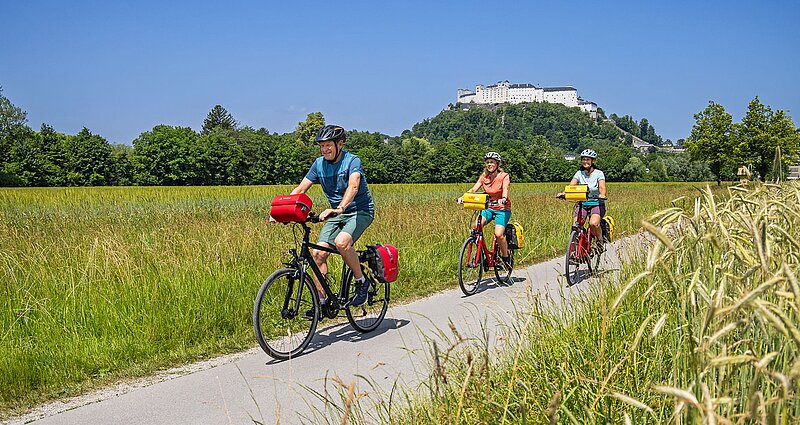 Raus aus Salzburg und ab in Richtung Süden. Durch schattige Auen entlang der Salzach radeln Sie nach Hallein, einer früher durch den Salzabbau reichen Keltenstadt. Hallein überrascht mit einer romantischen Altstadt mit kleinen Gassen, Torbögen und Häusern mit prächtigen Fassaden. Vorbei am rauschenden Wasserfall passieren Sie Golling und rollen am gut ausgebauten Radweg weiter bis nach St. Johann. Unverkennbar - wie doppelte Berggipfel - ragen hier die Türme des Pongauer Domes empor.