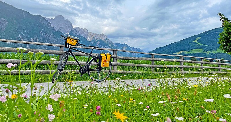 Lienz punktet als Startort der Tour nicht nur mit über 2.000 Sonnenstunden im Jahr, sondern auch mit einer bezaubernden Innenstadt und einem herrlichen Panorama auf die Lienzer Dolomiten. Mit der Bahn geht es als Nächstes an den Startpunkt des Drau Radwegs ins italienische Toblach. Nach einem Cappuccino radeln Sie hier einer noch sanft plätschernden Drau entlang durch das enge Pustertal. Die wildromantische Gegend macht diese Etappe zu einem ganz besonderen Highlight.