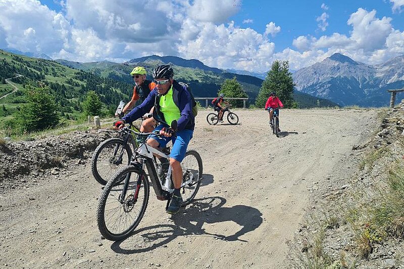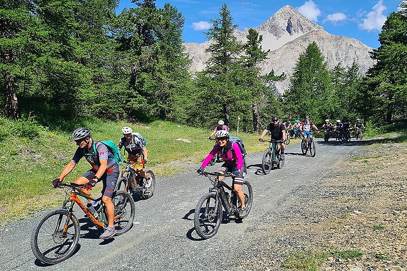 Mit dem Bus geht es in den französischen Skiort Montgenèvre. Hier startet die Tour der „Geschichte der alpinen Festungsanlagen“. Auf alten Militärstraßen und Naturwegen geht es hinauf zu der zur französischen Maginot-Linie gehörenden Festungsanlage Ouvrage du Gondran. Auch wenn man es sich auf dem Weg, der durch Blumenwiesen nach oben führt, noch nicht vorstellen kann, werden wir bis zur im Gipfel versteckten Panzerkuppe hochradeln. Die Aussicht vom Gipfel auf die umliegende Berglandschaft mit dem Chaberton, dem vergletscherten Pelvoux-Massiv und dem Pic de Rochebrune im Südosten ist einfach nur klasse. Nach einer Gipfelpause geht es über eine großartige nicht enden wollende Abfahrt hinunter nach Briançon. Da die alte Festungsstadt sehr sehenswert ist, nehmen wir uns noch die Zeit für einen Spaziergang durch die Stadt, bei dem die Räder unter Aufsicht abgestellt werden können. Über den Col de Montgenevre geht es mit dem Bus zurück zum Hotel.