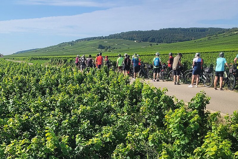 Heute radeln wir teils auf Radwegen, teils auf Nebenstraßen auf der „Route des Grands Crus“ (Straße der edlen Weine). Wir beginnen die Tour südlich von Dijon. Die Strecke verläuft durch viele der großen Appellationen des Burgunder Weins. Sie führt uns durch die Weinberge der Côte de Nuits, der Côte de Beaune und der Hautes-Côtes. Wir kommen am Château du Clos de Vougeot vorbei, ein von Zisterziensermönchen im 12. Jahrhundert erbautes Kloster mit Weinkeller, Weinpressen und Fasshaus. Hier werden jedes Jahr die sog. „Chapitres“, die Zusammenkünfte der Bruderschaft der Weinverkoster, veranstaltet. Nach einer Zwischenpause im charmanten Weinort Nuits-Saint-Georges erreichen wir nach rund 35 km Beaune, wo wir unsere Mittagspause einlegen. Wahrzeichen der Stadt ist das prachtvolle Hôtel-Dieu (Hospiz) mit seinen bunt glasierten Dachziegeln. Anschließend radeln wir durch weltberühmte Weinorte wie Pommard und Meursault und erreichen schließlich Puligny-Montrachet, das Herz des weißen Burgunders. Wer möchte, kann hier den Tag bei einer Weinverkostung ausklingen lassen – ein stimmungsvoller Abschluss unserer heutigen Tour. Zurück zum Hotel geht es mit dem Bus.
