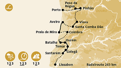 Übersicht über eine Auswahl der schönsten Radtouren nach Lissabon: