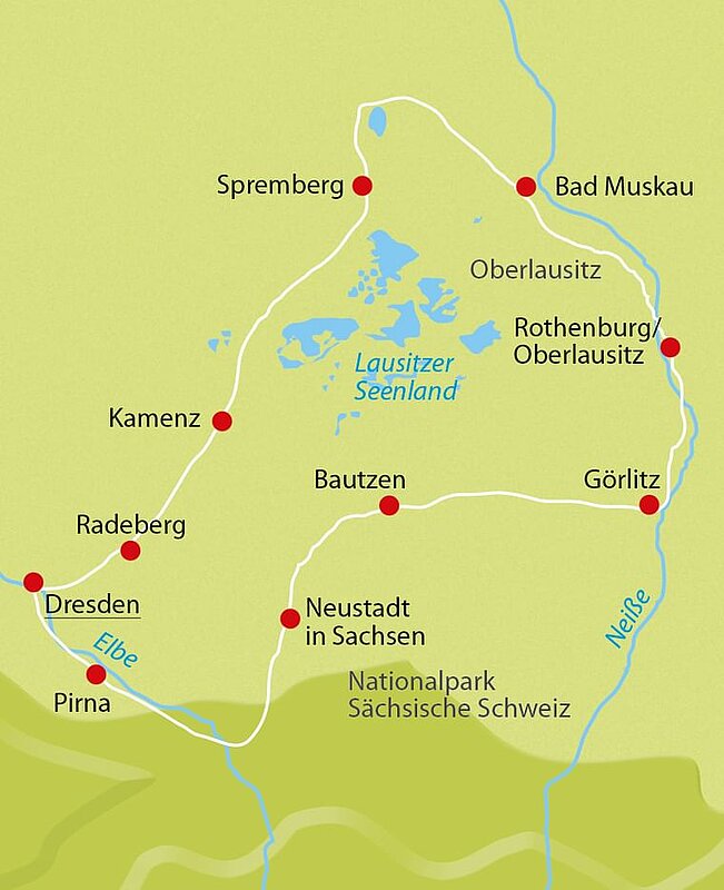 Ihre Tour führt zunächst entlang der Elbe und durch das »Dresdner Hochland« über Radeberg und Pulsnitz bis nach Kamenz. Der Geburtsort von Gotthold Ephraim Lessing ehrt seinen berühmten Sohn im Lessing-Museum und blickt auf etwa 900 Jahre Geschichte zurück.
