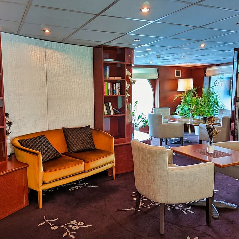 An Bord der MS SE-MANON erwartet Sie eine entspannte und gemütliche Atmosphäre. So bleibt es Ihnen überlassen, ob Sie nach dem Sightseeing den kleinen einladenden Wellnessbereich mit Sauna und Whirlpool nutzen, sich in die kleine Bibliothek zurückziehen oder lieber im Panoramasalon oder auf dem Sonnendeck entspannen. Im Restaurant mit Panoramaaussicht auf die vorbeiziehende Landschaft wird für Ihr leibliches Wohl gesorgt.