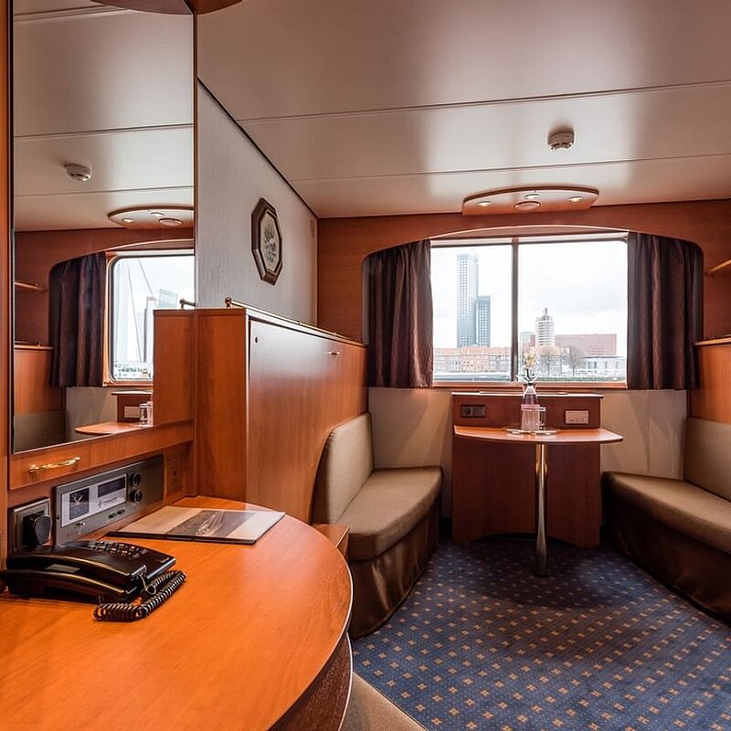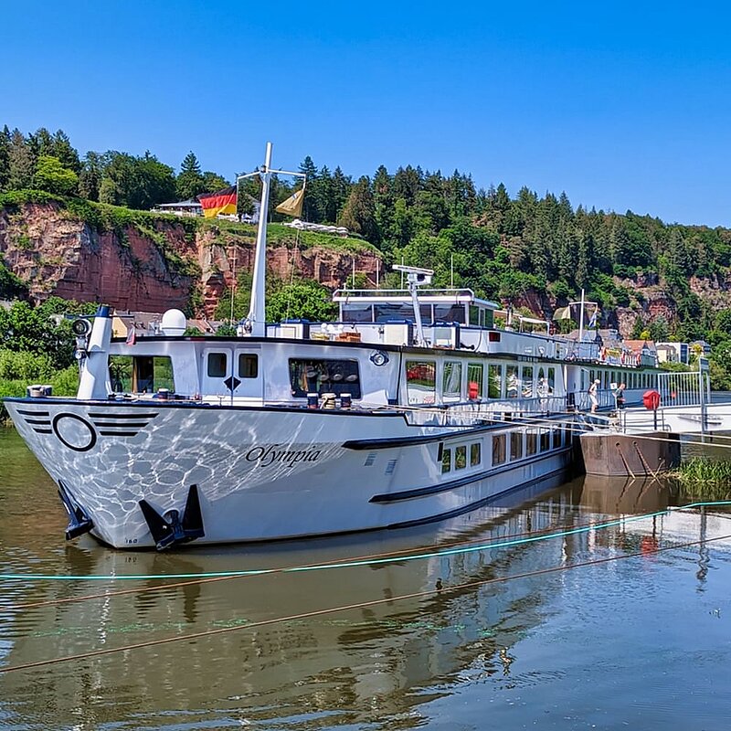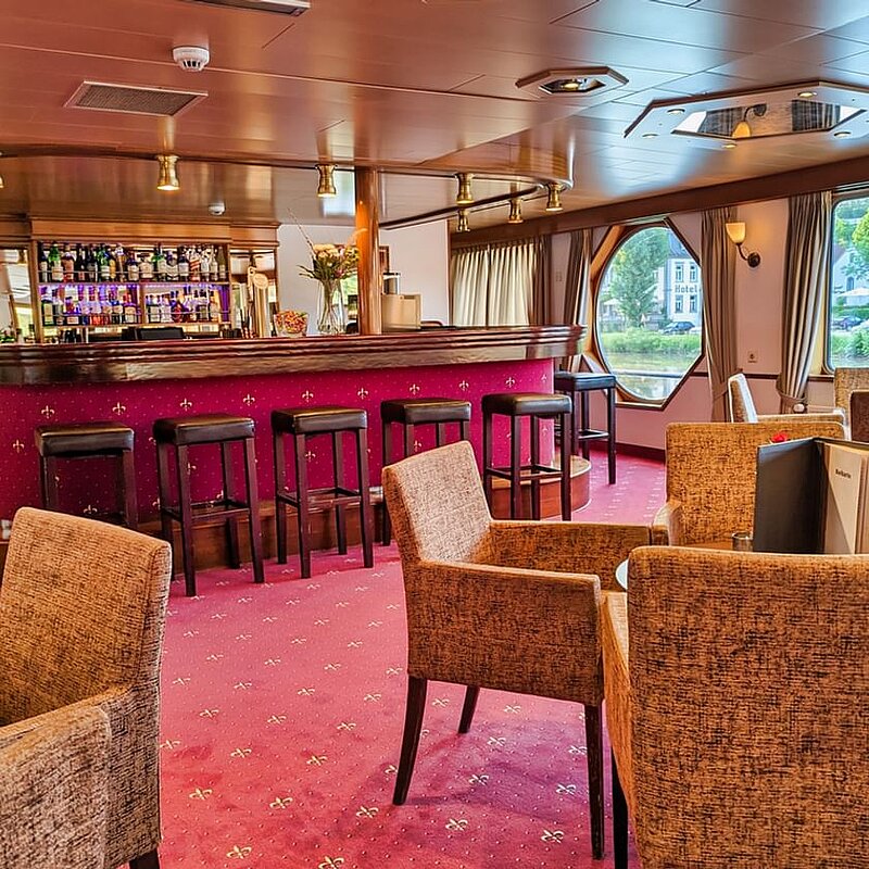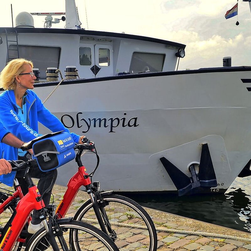 Die MS OLYMPIA, ein komfortables und gemütliches Flussschiff mit familiärer Atmosphäre. Der im englischen Clubstil eingerichtete Panoramasalon mit Bar und das helle und freundliche Restaurant laden zu entspannten Stunden an Bord ein. Großzügiges, teilweise überdachtes Sonnendeck mit Sitzplätzen und Abstellmöglichkeiten für die Fahrräder.