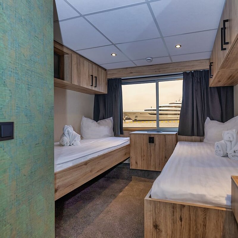 - Tägliche Kabinenreinigung, Bettwäsche- und Handtuchwechsel nach Bedarf