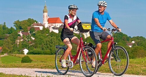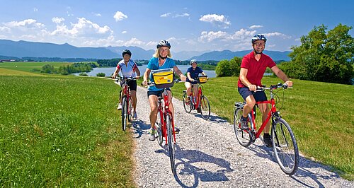 Die majestätische Kulisse der bayerischen Alpen, idyllische Naturschutzgebiete, einladende Biergärten, Häuser mit Lüftlmalerei an den Fassaden und urige Gastlichkeit – bei dieser Radtour erwartet Sie „Oberbayern“ pur. Genießen Sie ihren Radurlaub in Bayern!
