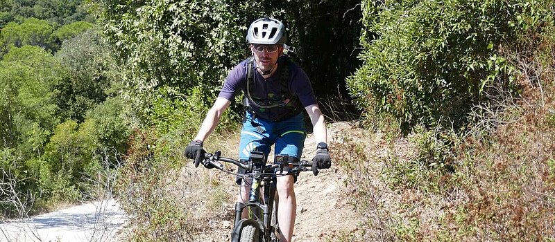 Ziel heute ist Campiglia Marittima, ein traumhaft schönes Städtchen am Berg, sonntags ist hier auf die Piazza am Meisten los und die einfachen Trails um Campiglia eignen sich hervorragend um uns auf die Tage hier einzustimmen. Wir fahren in Richtung San Vincenzo, am Einkaufszentrum vorbei weg von der Küste ins Hinterland. Bald haben wir eine schöne Aussicht zurück aufs Meer. Dann beginnt auch schon ein erster schöner Uphill Trail durch die Macchia. Am Ende dessen können wir Campiglia schon sehen, bis zur Burg (Rocca) sind es jedoch noch ein paar Höhenmeter. Die Aussicht von hier oben lohnt sich unbedingt und wir haben einen wunderschönen 270 Grad Blick auf die Region, in der wir die nächsten Tage zum Biken gehen. Eine kleine Rast in einer der Bars dürfen wir uns gönnen, bevor wir noch die flowigen Trails um Campiglia angehen. Zurück fahren wir über die Küstentrails im Küstenpark von Rimigliano.
