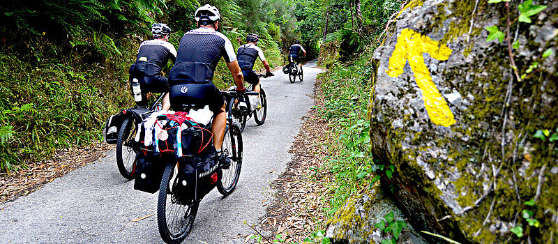 Von Porto nach Esposende geht es über Vila do Conde entlang schöner Strände und Gärten. Weiter geradelt wird über Viana do Castelo und Caminha, per Fähre geht es über den Fluss Minho nach A Guarda in Spanien. Entlang zerklüfteter Küste nach Baiona und Vigo radelt ihr nach Redondela. Über Arcade und Pontevedra führt die Route durch Wälder bis nach Santiago de Compostela.