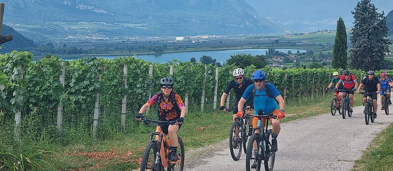Die ersten drei Tage bleiben wir in Meran und fahren zu Beginn ins Etschtal und hoch auf die Naturnser Alm. Am zweiten Tag geht es ins Passeier Tal und auf Höhenwegen in das Dorf Tirol. Dann folgen wir einem Kammtrail von Meran aus, über Jenisen nach Bozen und weiter nach Auer. Hier verbringen wir zwei Nächte. Ein Rundweg auf einer aufgelassenen Bahnstrecke bringt uns in den Nationalpark Trudner Horn. Von der Kanzel aus schauen wir runter auf Weinberge und Weingüter, von denen wir im Anschluss eines besuchen. Zum Abschluss geht es auf Höhenwegen entlang der Südtiroler Weinstraße nach Terlan, wo wir uns auf eine besondere Verkostung freuen. Mit dem Zug fahren wir zurück nach Meran und können den letzten Abend gemeinsam ausklingen lassen.