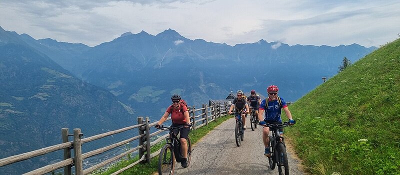 Die ersten drei Tage bleiben wir in Meran und fahren zu Beginn ins Etschtal und hoch in Richtung Naturnser Alm. Am zweiten Tag geht es ins Passeier Tal und auf Höhenwegen in das Dorf Tirol. Dann folgen wir einem Kammtrail von Meran aus, über Jenisen nach Bozen und weiter nach Auer. Hier verbringen wir zwei Nächte. Von hier aus erkunden wir die Weinstraße in südlicher Richtung. Zum Abschluss geht es auf Höhenwegen entlang der Südtiroler Weinstraße nach Terlan, wo wir uns auf eine besondere Verkostung freuen. Mit dem Zug fahren wir zurück nach Meran und können den letzten Abend gemeinsam ausklingen lassen.