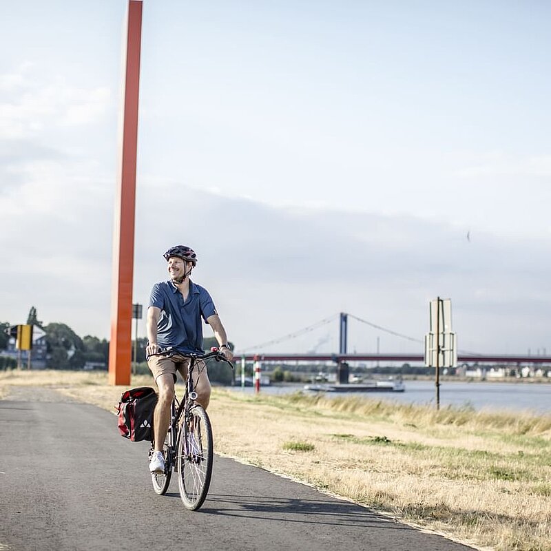 Auch der letzte Radeltag ist nochmals gespickt mit Höhepunkten. Der Radweg bietet am Morgen eine idyllische Variante direkt am Flussufer bis Mülheim und führt hier am Schloss Broich entlang zum preisgekrönten Aquarius Wasserturm mit seinem multimedialen Museum auf 14 Ebenen. Auch zum Abschluss verläuft die Route weiter auf separaten Radwegen bis zur Ruhrmündung in den Rhein. Hier steht am Ende des Ruhrtal-Radwegs symbolisch das faszinierende Rheinorange, eine leuchtende 25 m hohe Landmarke inmitten des beeindruckenden Panoramas des Duisburger Hafens. Nun haben Sie hoffentlich noch genügend Zeit um am Nachmittag an einer Hafenrundfahrt durch den größten Binnenhafen der Welt teilzunehmen ehe Sie am Abend im sanierten Innenhafen in einer der zahlreichen Restaurants, Kneipen oder Bars die schöne Reise ausklingen lassen.