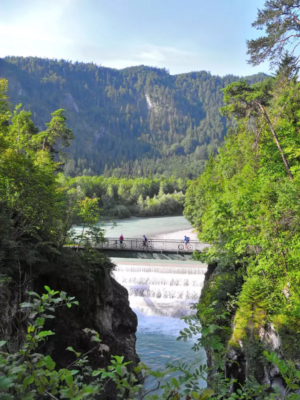 Kurz hinter Füssen passieren wir den Lechfall sowie die deutsch-österreichische Grenze und radeln nach Reutte. Auf dem historischen Verlauf der Via Claudia Augusta durchqueren wir das Tiroler Land. Ab Lermoos überwinden wir die verkehrsreiche Strecke über den Fernpass per Bustransfer. Vom Schloss Fernstein radeln wir via Nassereith durch das malerische Gurgltal nach Imst. (1 Ü)