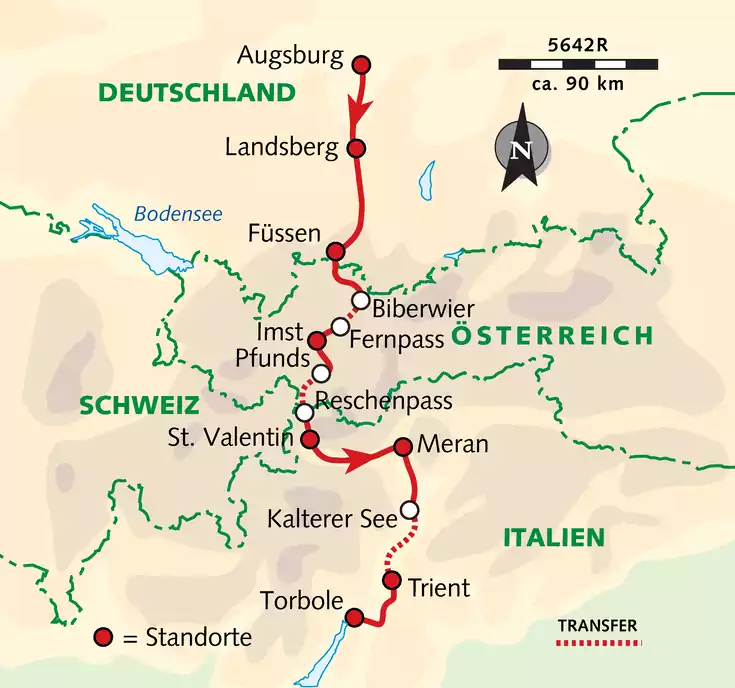 Faszination Transalp – eine Alpenquerung zählt wohl zu den Highlight-Erlebnissen eines jeden Radfahrers! Die Via Claudia Augusta, die vor ca. 2.000 Jahren von den Römern als Verbindung von den nördlichsten Provinzen ans Mittelmeer gebaut wurde, gilt als eine der leichtesten und zugleich schönsten Alpenüberquerungen. Sie führt größtenteils über asphaltierte Radwege von der Donau über den Fern- und Reschenpass bis ins italienische Trentino – immer neue magische Alpenpanoramen eingeschlossen!