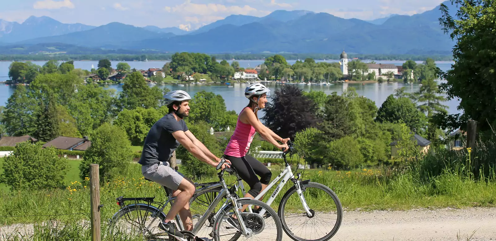 Auf einem der schönsten Radwege Bayerns, dem Chiemsee-Radweg, umrunden wir heute den See. Immer wieder erwarten uns Panoramen auf die Chiemsee-Inseln, die nahen Alpen und das bayerische Voralpenland.