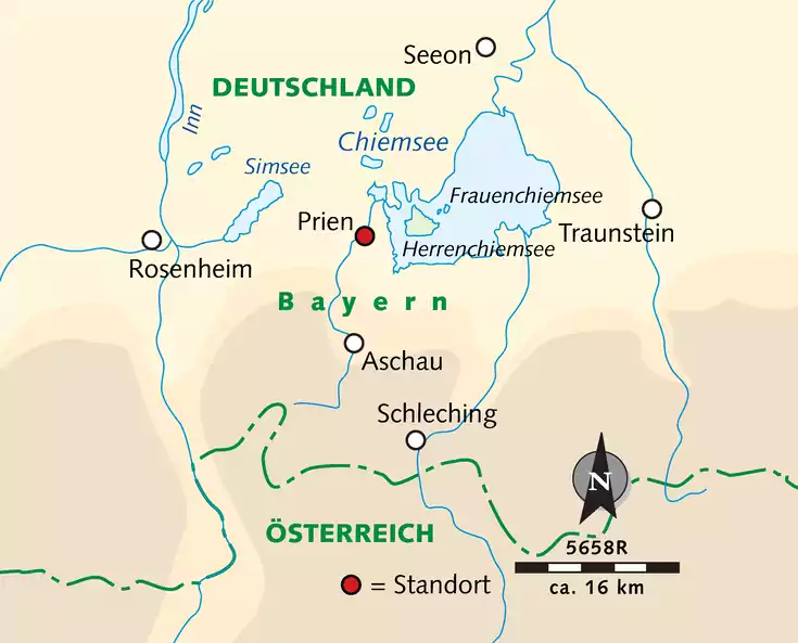 Anreise nach Prien. Der Luft- und Kneippkurort liegt am Fuße der Alpen und direkt am "Bayerischen Meer", dem Chiemsee.