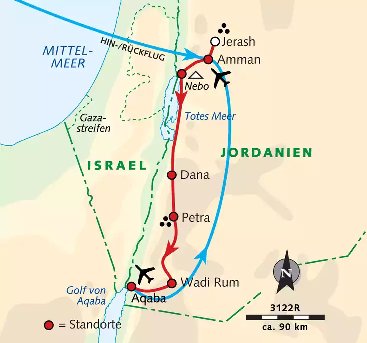 Im Königreich Jordanien verbinden wir abwechslungsreiche Radtouren mit den einzigartigen Sehenswürdigkeiten des Landes. Im Norden radeln wir durch Olivenhaine und Bergdörfer, während wir weiter südlich durch eine spektakuläre Wüstenlandschaft fahren – Natur pur! Selbstverständlich besuchen wir die berühmte Felsenstadt Petra (UNESCO-Weltkulturerbe), lassen uns im Toten Meer treiben und genießen den einzigartigen Sternenhimmel im Wadi Rum. Am Roten Meer klingt unsere spannende Reise aus. Hier bleibt Zeit zum Entspannen und Baden.