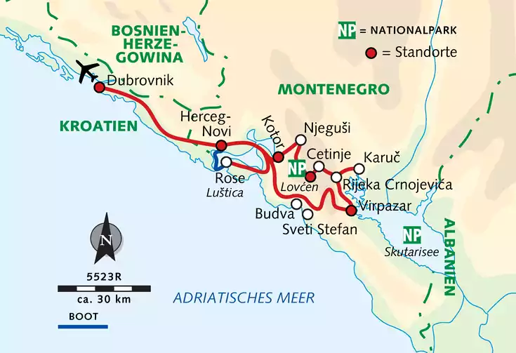 - Skutari-See, Lovčen und Rijeka Crnojevića