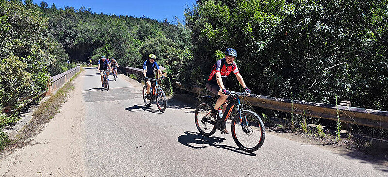 Die insgesamt 10 Radtouren sind zwischen 14 und 65 km lang und führen überwiegend über asphaltierte Nebenstraßen. Zum Teil befahren wir auch Schotterstrecken oder unbefestigte Wege. Der Tourenverlauf ist meist flach bis hügelig mit Ausnahme der Pässe Bainskloof, Grootrivier und Bloukrans. Hier bewältigen wir die Höhenunterschiede dank der Unterstützung unserer E-Bikes ganz entspannt. An den Küstenstraßen herrscht oft leichter Verkehr, es gibt jedoch meist einen Seitenstreifen, den wir mit unseren E-Bikes nutzen können. Unser Kleinbus ist während der Radtouren dabei und bietet die Möglichkeit, zwischendurch einzusteigen. Nur am Bloukrans-Pass kann uns das Fahrzeug nicht begleiten. Wir nutzen für diese Reise E-Mountainbikes (nur Herrenmodelle) der Marke Giant mit 9-Gang-Kettenschaltung, Mittelmotor, 500 Lithium-Ionen-Unterrohr-Akku, Federgabel, Scheibenbremsen, Ständer und Schutzblech.