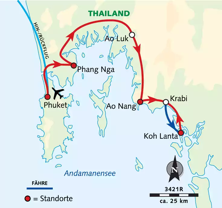 Auf unserer Genießertour in den Süden des Königreiches reiht sich ein Highlight an das andere: das dörfliche Hinterland von Phuket, die atemberaubenden Karstklippen-Panoramen von Phang Nga und Krabi und Baden vor den Trauminseln der Andamanensee. Per Rad entdecken wir immer wieder Winkel, die den meisten Besuchern verborgen bleiben. Mit Kajaks paddeln wir in die undurchdringlichen, seit Urzeiten besiedelten Mangrovenwälder. Das Motto der Reise lautet: Erholen, Entspannen und Genießen! Überzeuge dich selbst!