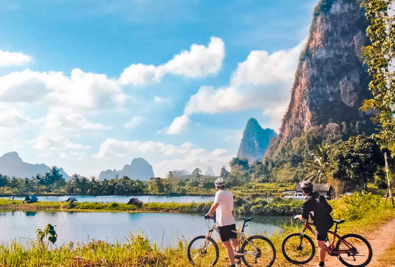 Heute radeln wir zum Dorf Nai Sra. Die Strecke ist umgeben von Karstklippen und hält tolle Ausblicke auf Dschungel, Ananas-, Ölpalmen- und Kautschukplantagen bereit. Die Tour endet an einem schönen, erfrischenden Süßwasserfluss mit Bademöglichkeit. Anschließend Fahrt zurück nach Ao Nang. (F, M)