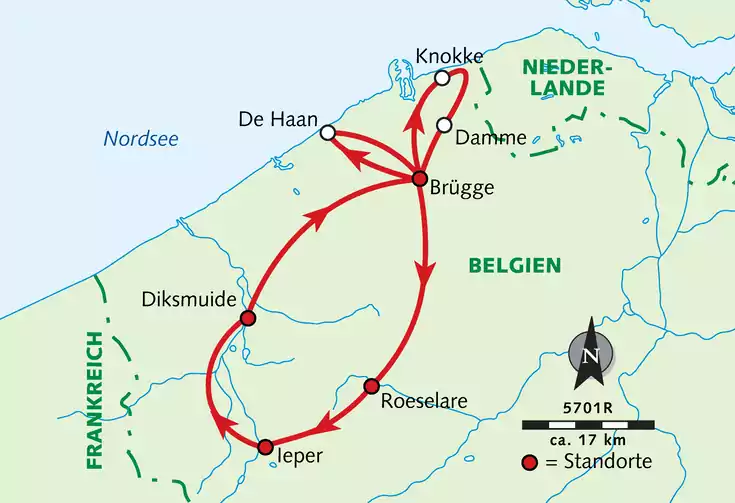 Kaum ein Reiseziel eignet sich besser zum Radeln als das belgische Westflandern: Ein dichtes Netz aus ruhigen Nebenstraßen, Radwegen und alten Treidelpfaden führt dich durch weite Landschaften und charmante Städte. Entdecke die Geschichte des Ersten Weltkriegs in Ieper und Diksmuide, schlendere durch das mittelalterliche Brügge und genieße die frische Nordseeluft. Steig aufs Rad und erlebe Westflandern!